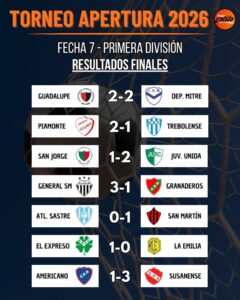 Se cerró la séptima fecha del Torneo Apertura 2026 y ya quedaron definidos todos los resultados de la jornada 💪⚽