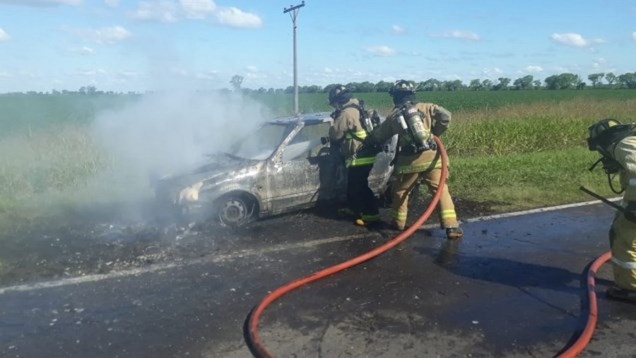 Un automóvil se prendió fuego este martes en la Ruta Provincial N° 13, a unos 2 km al sur de la Capilla Banchio, en jurisdicción de Sastre.
